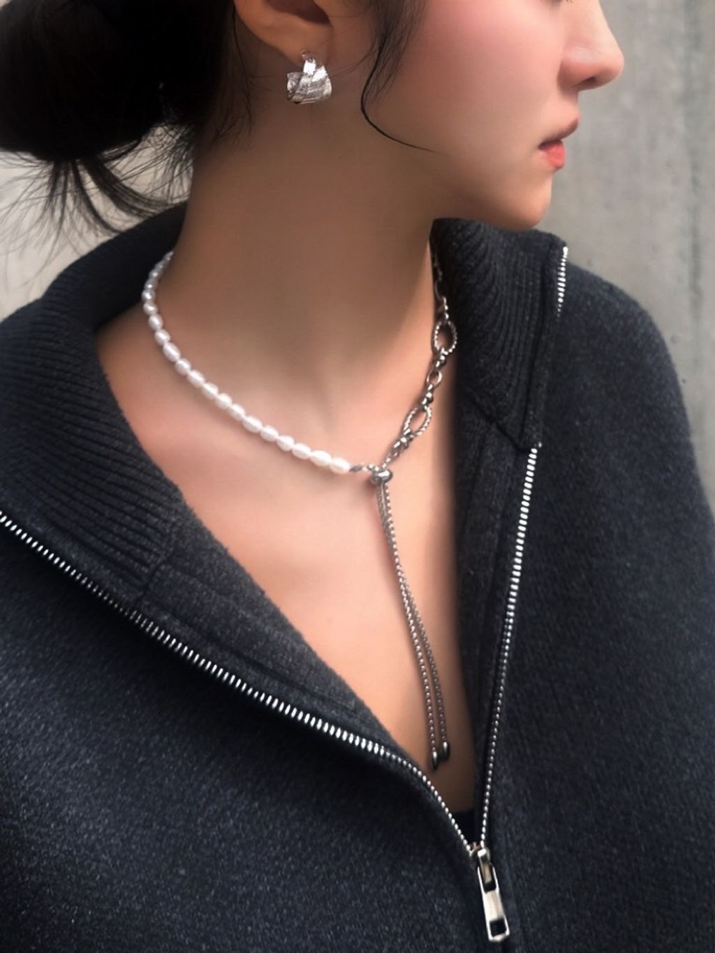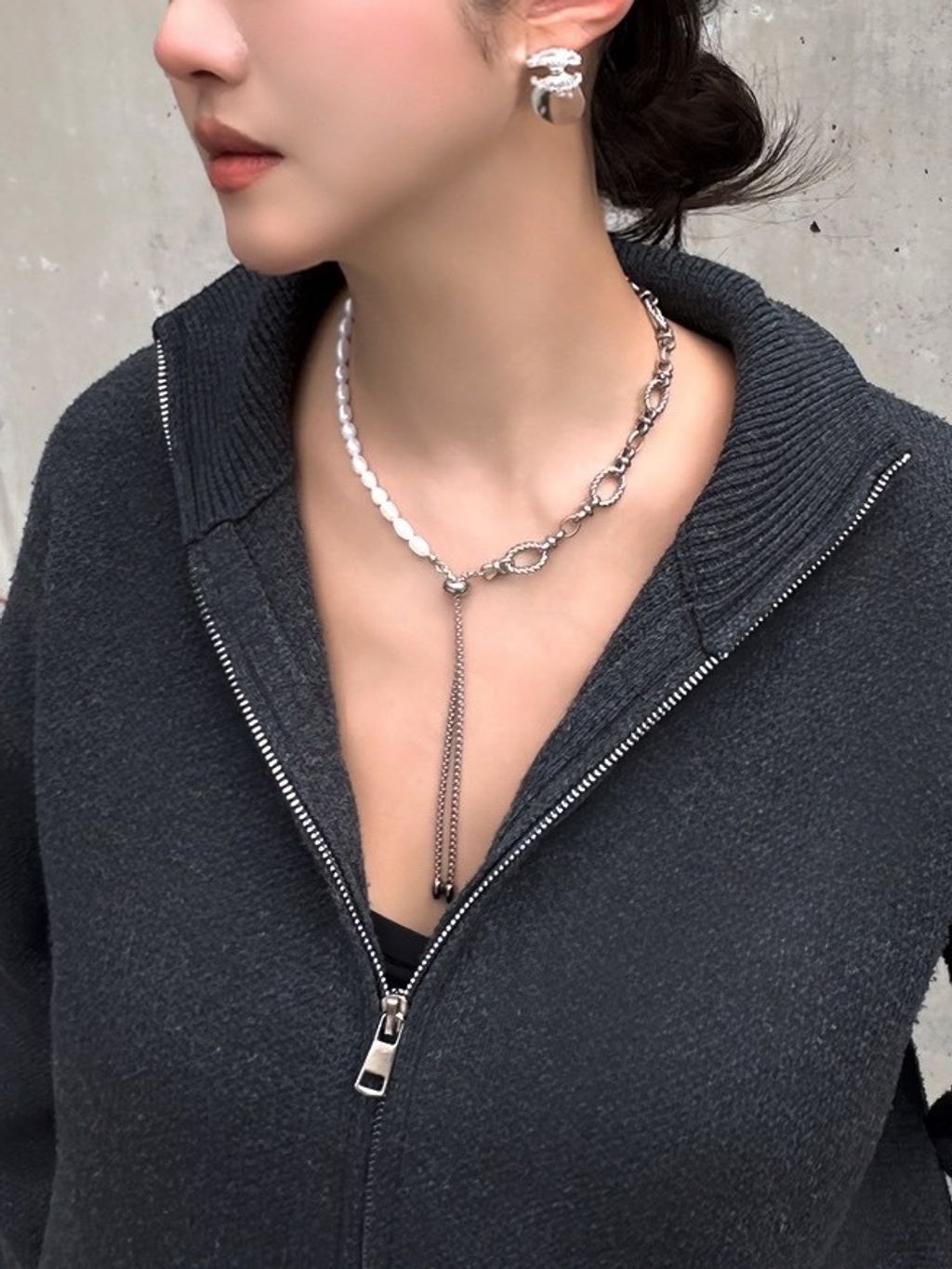 Lorelei | 拼接抽繩項鍊 (銀)